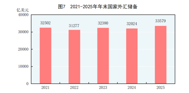 国家统计局:2025年末国家外汇储备33579亿美元,比上年末增加1555亿美元
